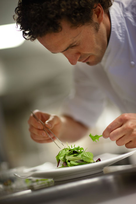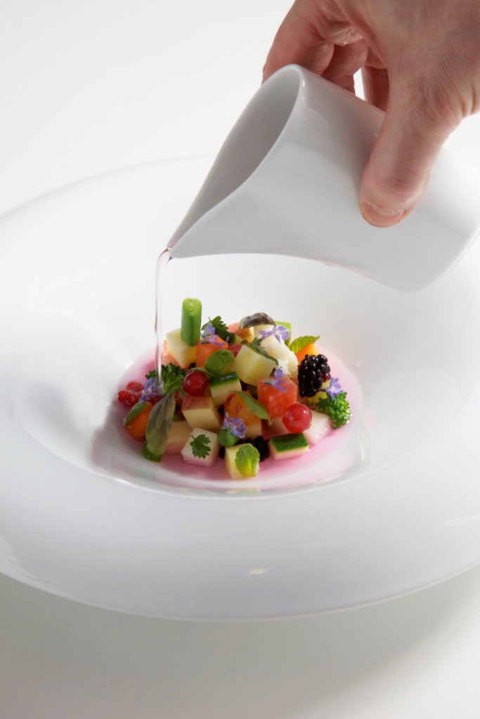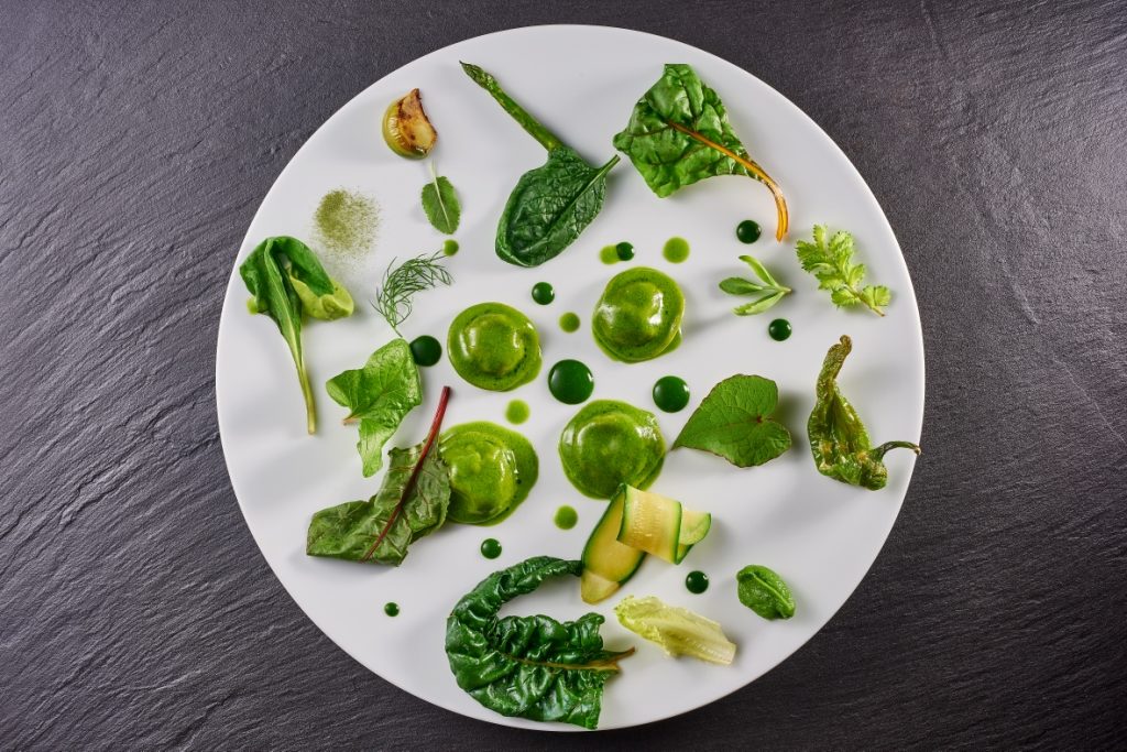 Per i grandi chef è d’obbligo rendere gourmet ogni preparazione, ma come si fa per gli elementi vegetali? «Rispettandoli, trattandoli bene. La verità è che solo se li senti come “tuoi”, riesci a dare loro la giusta importanza». Paragonati alla carne o al pesce, sono ingredienti più fragili, vanno letteralmente curati, oltre che studiati con attenzione. «Alcune verdure, ad esempio, possono essere cucinate solo espresse, altrimenti perdono la loro brillantezza e croccantezza. Poi ovvio, ci vuole anche il fattore fantasia. Con i fiori e le foglie del tagete, ad esempio, noi ci prepariamo un gelato».