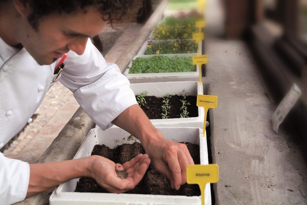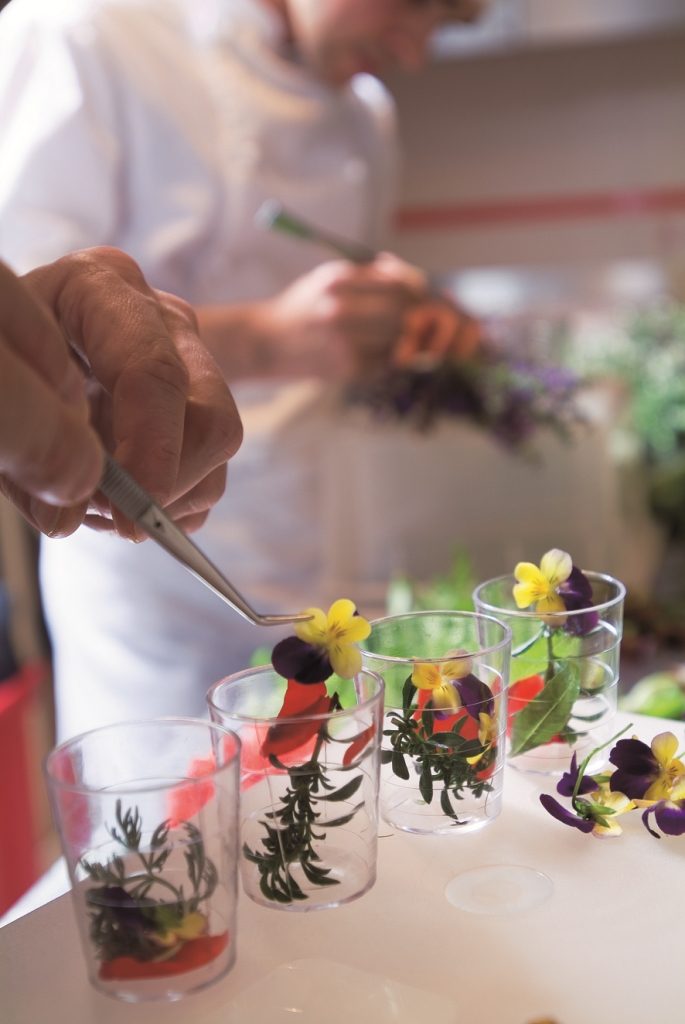 Negli ultimi anni l’uso di erbe aromatiche e fiori è diventato una moda. «Alcuni chef si muovono con disinvoltura, altri in maniera improvvisata. Cosa fa la differenza, oltre alla cultura del prodotto? Gli spazi adatti per la coltivazione. Essendo ingredienti “romantici”, effimeri, bisogna necessariamente averli a portata di mano. I fiori, ad esempio, vanno raccolti il mattino e utilizzati il giorno stesso per le preparazioni del pranzo e della cena. Noi evitiamo consapevolmente l’approvvigionamento in frigorifero».
