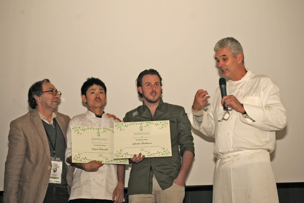 Il compito di giudicare le creazioni è stato affidato a una giuria tecnica presieduta da Pietro Leemann, con Marco Lanzetta, medico chirurgo vegano, Salvatore Alessandro Giannino, nutrizionista cattedra Unesco, Marco Sacco, chef del bistellato Piccolo Lago, Edoardo Ferrante, vegan chef de L’Orto già salsamenterio, e Carlo Passera, giornalista di Identità Golose. Da ricordare altri due riconoscimenti assegnati nel corso del Vegetarian Chance 2019. Il secondo classificato Sylvester Schattemanm si è aggiudicato anche il premio speciale di Ricola “per aver preso la responsabilità del grandissimo orto, ricco di verdure e fiori edibili, che cura personalmente nel tempo libero, e per la sua passione per le erbe aromatiche, tanto da aver conseguito – come unico cuoco belga – il diploma di erborista”. Il premio Rossòrapa, invece, è stato attribuito a Beak Sungjin, cuoca freelance coreana che vive in Giappone dove scrive libri per bambini ed elabora ricette per persone malate.