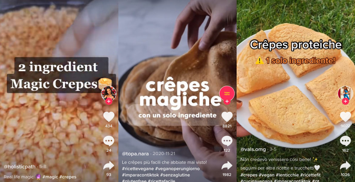 Ho recentemente notato un trend – lo sapete no, al giorno d’oggi esistono anche le “Ricette di TikTok” – che, video dopo video, ha iniziato a farmi insospettire e infastidire: quello che in molti chiamano la ricetta delle crêpes magiche.