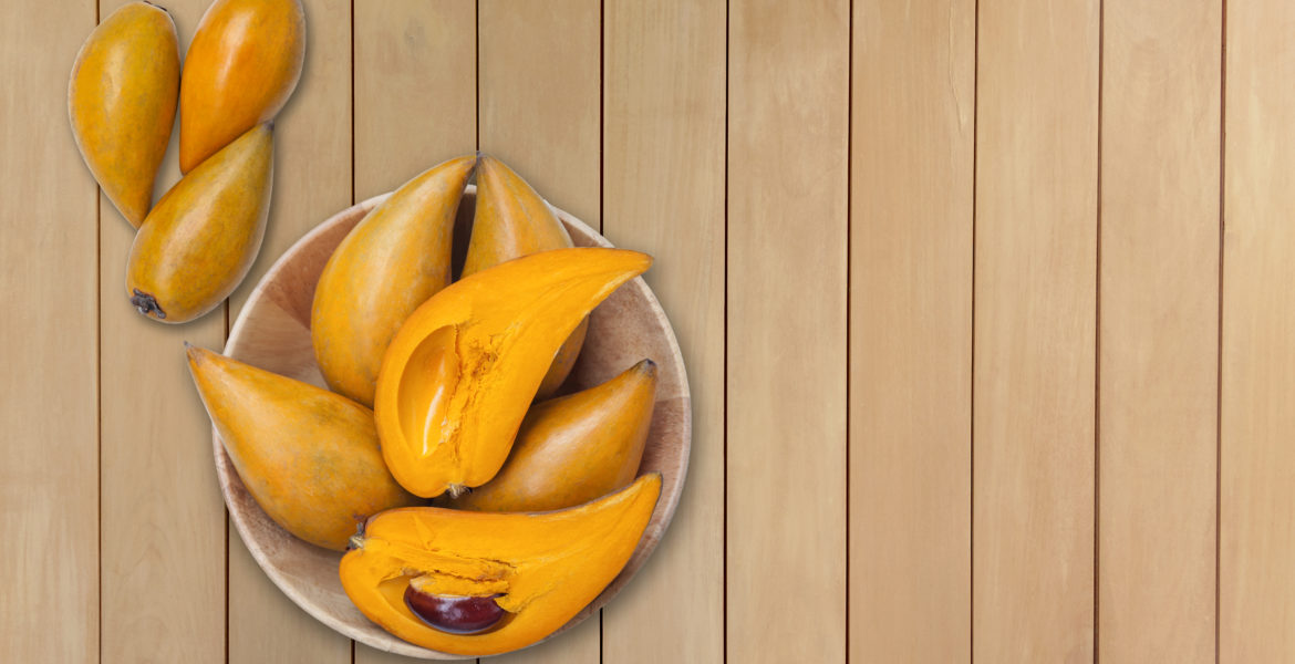 Proviamo a metterla sotto la lente. L’aspetto esterno ricorda quello del mango e della papaya. Di forma tondeggiante o allungata, ha una buccia sottile verde intenso quando il frutto è ancora acerbo, che vira verso il senape quando raggiunge la piena maturazione. All’interno trovano posto da due a cinque semi scuri e appiattiti. Ma la magia sta tutta nella polpa giallo-arancio, che viene fatta essiccare e poi ridotta in farina o in polvere. Descrivere il sapore della lucuma fresca non è esattamente semplice, ma possiamo ragionare per approssimanzioni. Secondo alcuni è il suo gusto è una via di mezzo tra lo sciroppo d’acero e la patata americana, ma decisamente più dolce, quasi caramellato. Per altri, invece, ricorda il sapore della zucca, solo molto più… zuccherata! Altri ancora lo definiscono una via di mezzo tra il mango, con la sua aromaticità tropicale, e l’albicocca, per la dolcezza spinta.