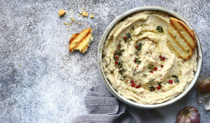 Per preparalo la prima cosa da fare è cuocere un cavolfiore tagliato a pezzetti in acqua o al forno per una ventina di minuti. Funziona anche la cottura al microonde, basterà aggiungere due cucchiai d’acqua e abbondante olio di oliva e lasciar cuocere a media potenza per quindici minuti. L’importante è che il cavolfiore cotto sia morbido e possa essere inserito nel mixer insieme a cinque spicchi d’aglio, due cucchiai di salsa tahini e tre di succo di limone. Aggiungi poi 3 cucchiai d’olio d’oliva e un cucchiaino di sale.