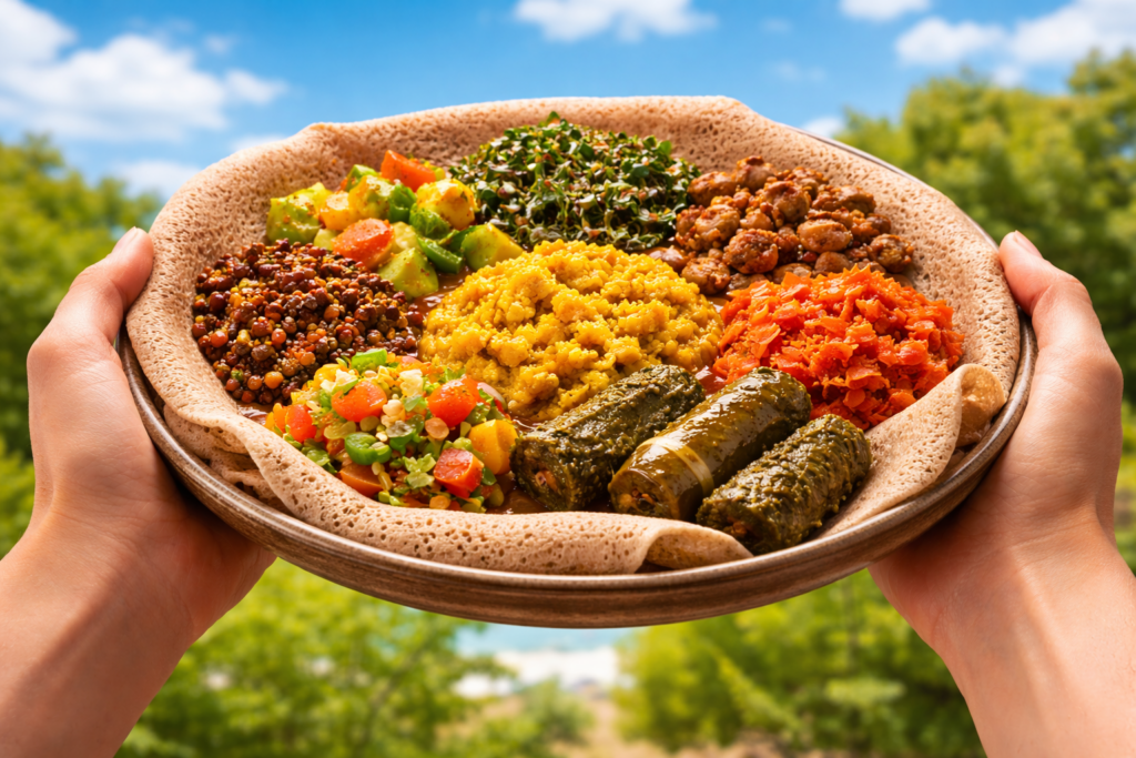 L’ortodossia non è una pratica geograficamente limitata all’Europa mediterranea. In Etiopia vivono 36 milioni di cristiani ortodossi, tra i più praticanti al mondo — con il 78% che frequenta la chiesa almeno una volta alla settimana. La cucina etiope di digiuno è già, strutturalmente, una delle tradizioni plant-based più ricche del pianeta: injera con legumi, lenticchie speziate, verdure fermentate. Un cibo delizioso che è possibilie trovare anche in Italia dove ci sono comunità etiopi, tipo Milano in Porta Venezia.
