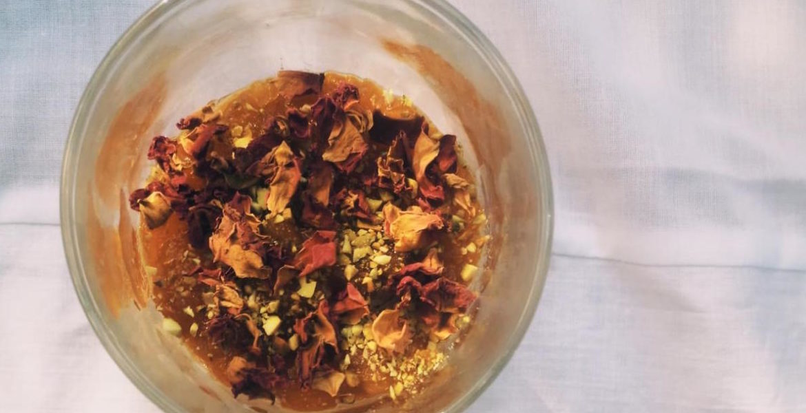 I petali di rosa commestibili si trovano online – i miei vengono da tuttelespeziedelmondo.it che ha una selezione superlativa – e nei negozi specializzati, idem per il cardamomo e l’acqua di rose alimentare.
